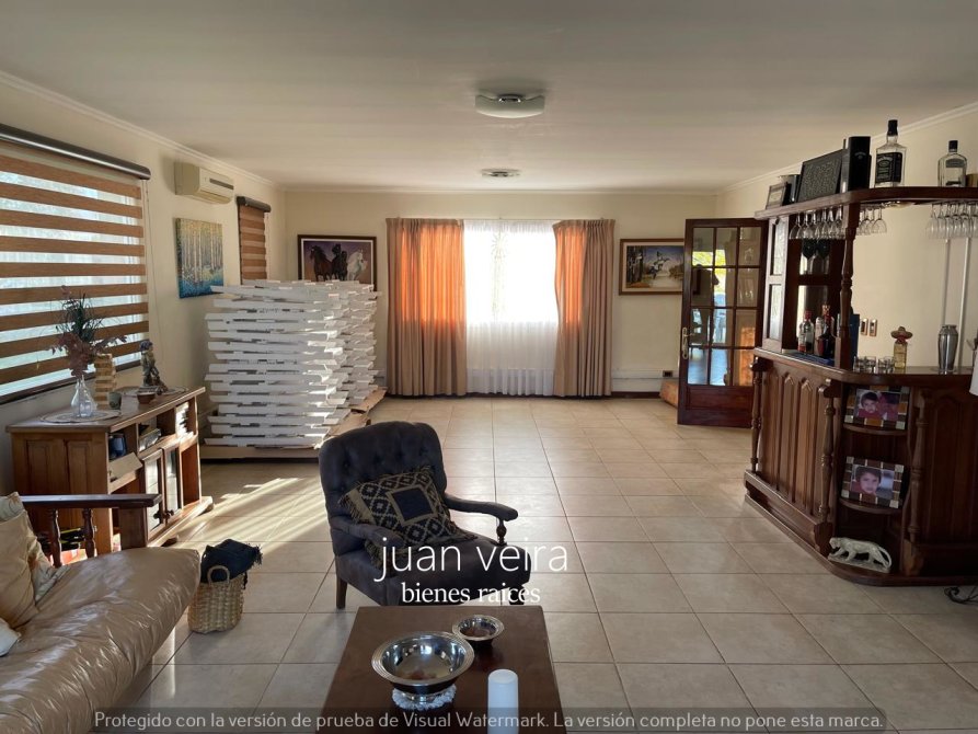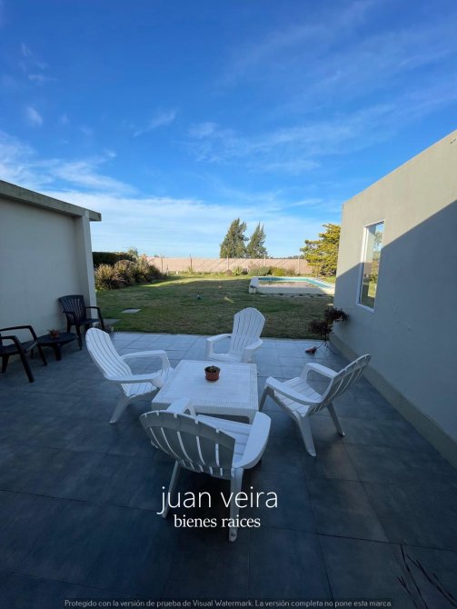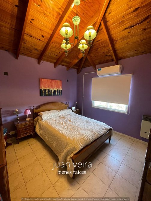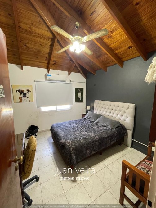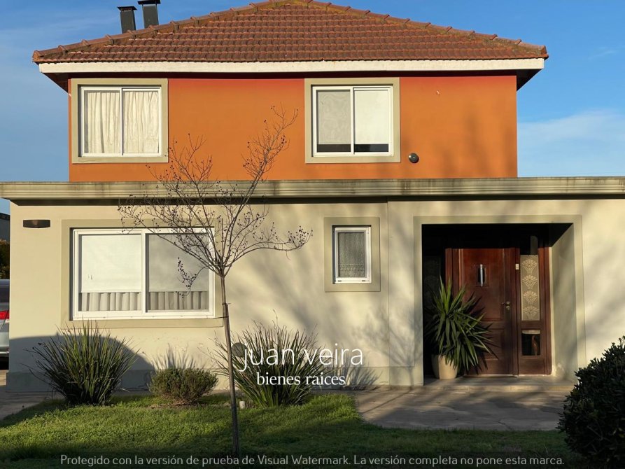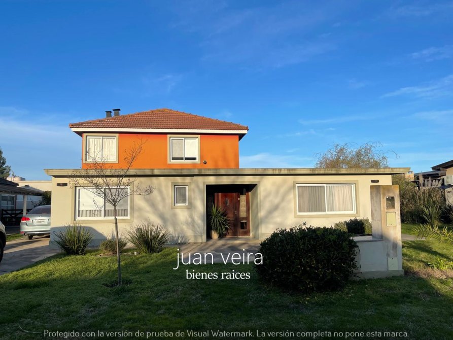 La misma esta construida sobre 2 terrenos es de dos plantas con un amplio y hermoso patio ,con vecinos de vivienda permanente a 400 metros de la entrada principal , sus calles son muy tranquilas y cuentan con una cantidad de arboles donde predomina tranquilidad para el descanso después de una larga jornada laboral